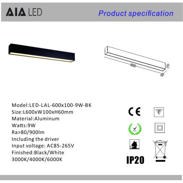 9W High quality linear economic price interior LED Ceiling light for restaurant used